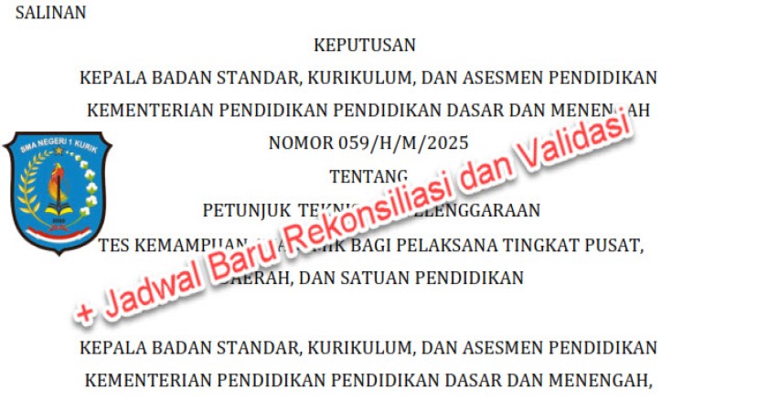 pada postingan kali ini saya coba membuat merangkum isi Salinan SK Nomor 059/H/M/2025 tentang Petunjuk Teknis Pelaksanaan Tes Kemampuan Akademik (TKA).